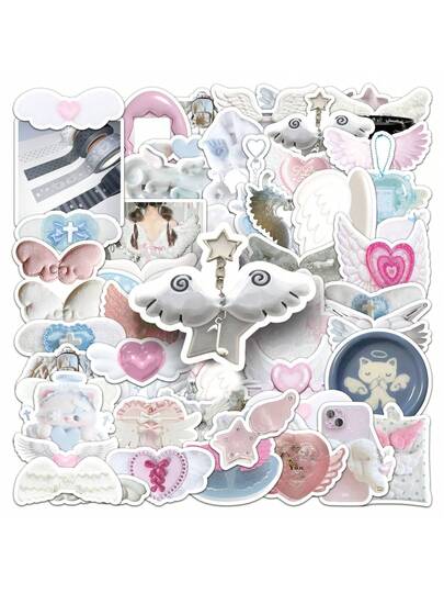 50PCS Angel Wings Stickers Y2K Stickers Kpop Stickers Stickers Stickers Kawaii Stickers Art Stickers Aesthetic Stickers Bulk Stickers For Laptop Skateboard Journal Notebooks Phone Cup Guitar Luggage Computer Fridge Desk - J - View 1