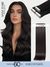 60pcs Tape In Hair Extensions 100% Human Hair #1B Natural Color Straight Style In 14-22 Inch Lengths Extensions Silky Seamless Invisible Top Quality Thick Ends Healthy Human Hair Extensions For Thin Hair And Salon Use And For All Women/Girls Daily Use