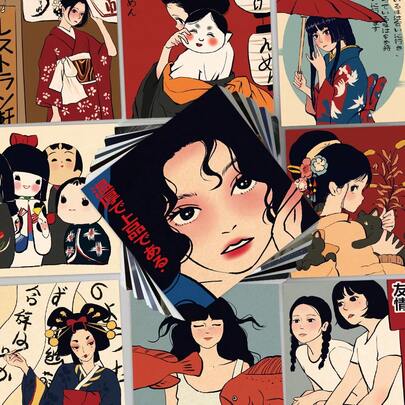 50Pcs Japanese-Style Cartoon Stickers, Spring And Colorful Stickers, Decorative Decals For DIY Embellishment Of Hand Accounts, IPads, Diaries And Tablet Computers - Multicolor - View 9