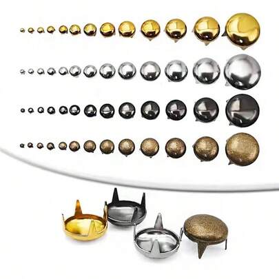 50pcs/100pcs Silver Round 4-Prong Rivet DIY Clothing Accessories, Suitable For Garments, Shoes, Bags And Hats - Multicolor - View 1