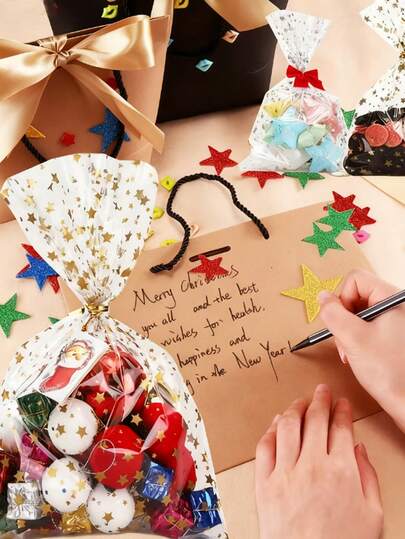 50pcs/10pcs Golden Star Printed , Clear Cellophane Treat Bags With Twist Ties - Durable Plastic Gift Packaging For Birthdays, Weddings, Parties, Bakery & Craft Favors, Party Favors, Decorative Wrapping, Highquality Wrap, Party Supplies, Event, Gift Bags, Small Gift Bags, Event Decorations, Festive Design, Elegant Presentation, Sturdy Material, Wedding Planners - Multicolor - View 11
