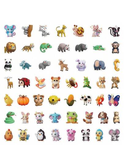50pcs 3D Animal Stickers For Luggage, Skateboard, Notebook, Water Bottle, Waterproof Decorative Stickers - Multicolor - View 1