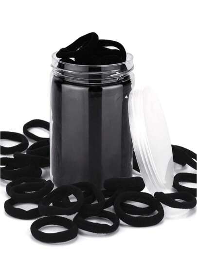 50pcs/ Girls' Basic High Elasticity Hair Ties For Ponytail, Hairstyle (Assorted Colors) Casual Women's Solid Casual Headband, Business Trip Bathroom Hair Washing Rope Headband, Black Headband, High Elasticity Rubber Band - Black - View 1