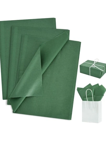 50pcs Green Gift Wrapping Paper, Suitable For Handmade Crafts, Party Gift Packaging, Bouquet Wrapping, Shoes And Clothing Packaging, Also Suitable For Birthday Gifts, Or Decorations For Holidays And Weddings - Green - View 1