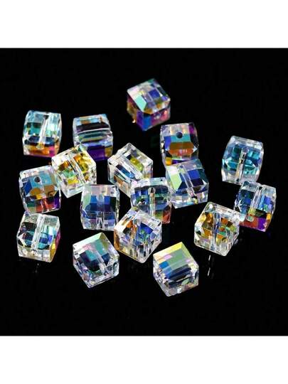 50pcs Shiny Artificial Crystal Cube Beads 4/6/8mm - Ideal For DIY Jewelry Making, Bracelets, Necklaces, Earrings - Craft Materials For Small Businesses - New AB - View 1