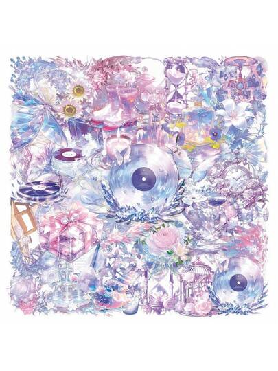 50pcs Transparent Dreamy Ins-Style Stickers, Purple Crystal PET Decorative Phone Case Stickers, Girly & Elegant - Multicolor - View 1