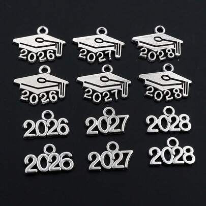 50pcs Year Number 2026 2027 2028 Pendant Charms DIY Jewelry Making Jewelry Finding Antique Silver Plated Accessories - Antique Silver - View 1