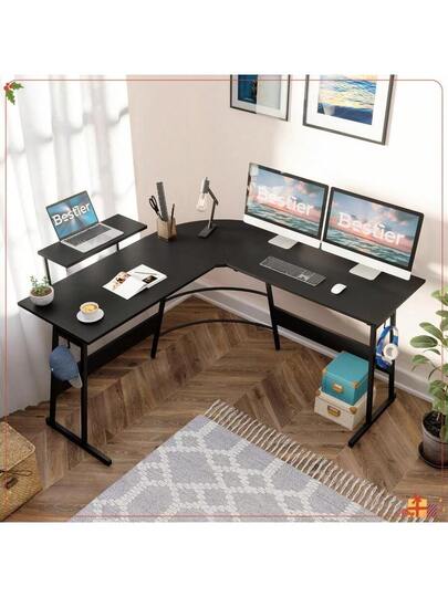 51" Gaming Desk L-Shaped Computer Desk With Monitor Shelf Corner PC Home Office Gaming Table, Carbon Fiber Black - Multicolor - View 1