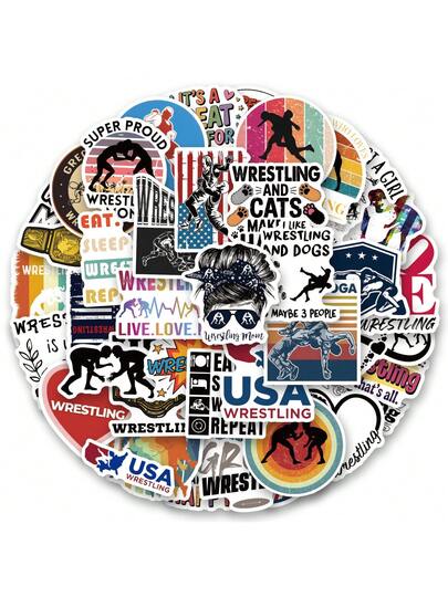 53PCS Wrestling Stickers Aesthetic Vinyl Stickers High Quality Stickers Decals Scrapbook,Journaling,Laptop,Bumper,Skateboard,Water Bottles,Computer,Phone Stickers Can Bring A Lot Of Fun To Your Life,The Perfect Gift For Adults - Multicolor - View 1
