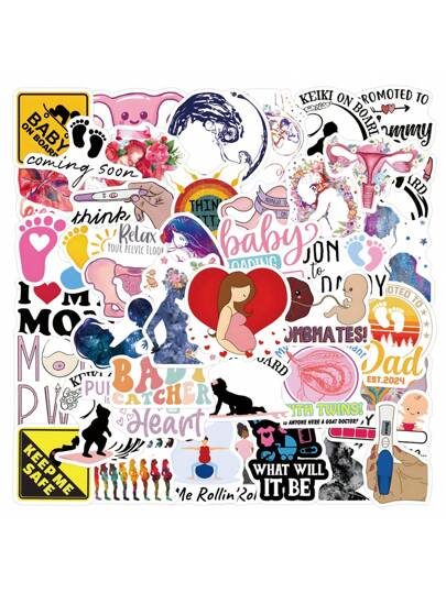 55Pcs Pregnancy Stickers Pack | Western Stickers,High Quality Stickers For Scrapbook,Graffiti Sticker,Journaling,Laptop,Bumper,Skateboard,Water Bottles,Computer,Cartoon,Hard Hat,Car Stickers,Stickers Can Bring A Lot Of Fun To Your Life,The Perfect Gift For Adults - Multicolor - View 1