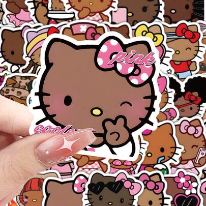 56pcs Cartoon Girl Simple Fashion Style Sticker Set Brown Style, Suitable For Girls | Cute Sticker Decoration Suitable For DIY Decoration Of Daily Items, Party Styling, Ramadan, Back To School Season, Valentine's Day Gifts, The Best Choice, Suitable For Sticking On Notebooks, Stationery, Furniture, Accessories - Multicolor - View 1