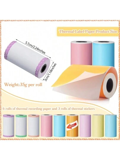 57mm Thermal Printer Paper Colorful Mini Printing Paper Roll And Self-Adhesive No-Sticky Printable Sticker For Portable Thermal Printers - Multicolor - View 9
