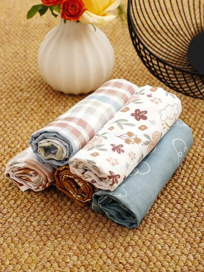 5PCS 60*60cm Muslin Extra Soft And Absorbent Baby Burping Cloth - Washcloth Baby Face Towel,Multi-Purpose Square Handkerchief,Baby Bandana Drool Bibs - Multicolor - View 4