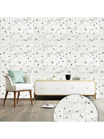5m/196.8inch 3d White Brick Pattern Self-Adhesive Wall Stickers, Water Resistant & Damp Proof Wallpaper For Home & Tv Background, Foam Wall Decor - Black and White - View 4