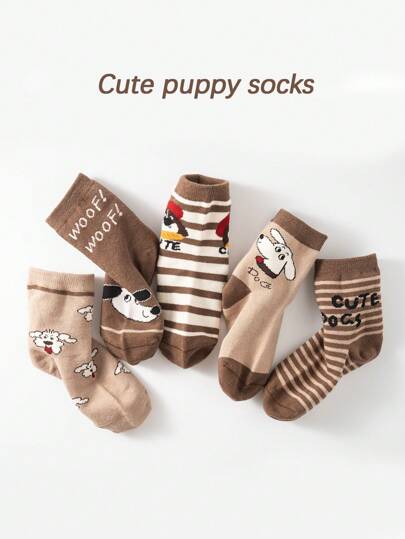 5pairs Cute Dog Design Socks, Unisex Children Ankle Socks, All Season - Multicolor - View 1