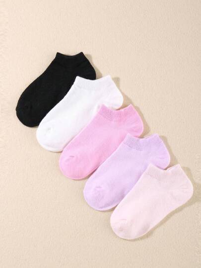 5pairs Kids Solid Casual Ankle Socks For Daily Life - Multicolor - View 1