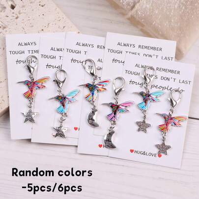 5pcs/6pcs Inspirational Hummingbird & Crescent Moon Keychain Set, Includes Pocket Hug Card For Encouragement And Support, Unisex Design For Handbag, Coin Purse, Backpack And Car Key Decoration. Suitable For Family Gatherings, Birthday Parties, Graduation Memento, Team Collaboration Gift, Eid Al-Fitr Souvenir, For Any Loved Ones Who Need Support And Encouragement. - Multicolor - View 1