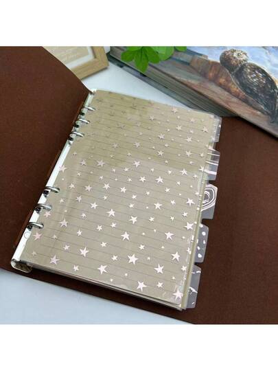 5pcs A5/A6 Leaf & Star Separator Page, 6 Hole Divider For File Organizer School Supplies, Back To School - Clear - View 1