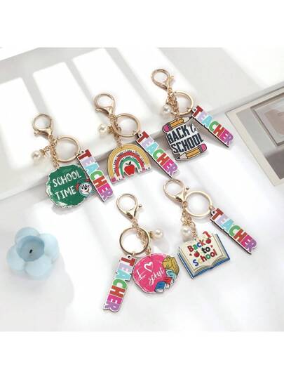 5pcs Back To School Key Chain, Teacher Gift, Keyring For Women & Men - Set 2 - View 1