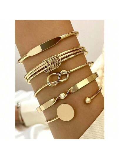 5pcs Bohemian Style Women's Metal Bracelet Set - Yellow Gold - View 1