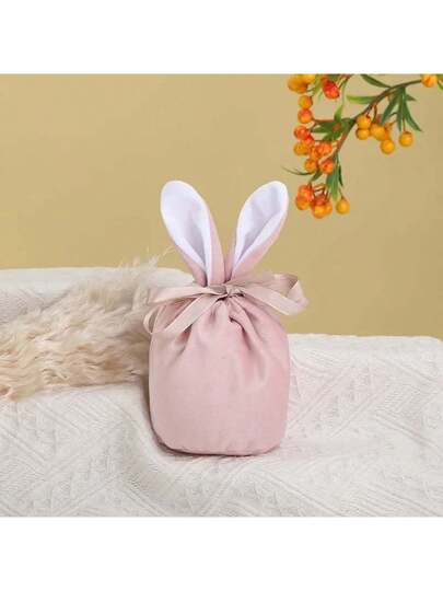 5pcs Creative Easter Bunny Ear Plush Bag Gift Box, Wedding Candy Box, Cute Easter Decoration, Valentine's Day - Baby Pink - View 1