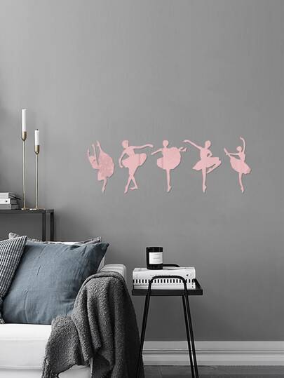 5pcs Dancing Girl Pattern Mirror Wall Sticker - Rose Gold - View 1