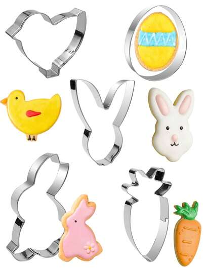 5pcs Easter Stainless Steel Cookie Cutter Set, Kitchen Baking Molds Egg, Chick, Rabbit, Rabbit Head, Carrot Easter Shapes Baking Tools - Silver - View 6