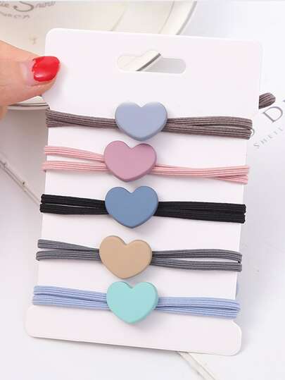 5pcs Heart Decor Hair Tie - Multicolor - View 1