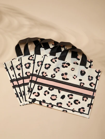 5pcs Leopard Print Gift Bag, Back To School Valentine Day - Khaki - View 4
