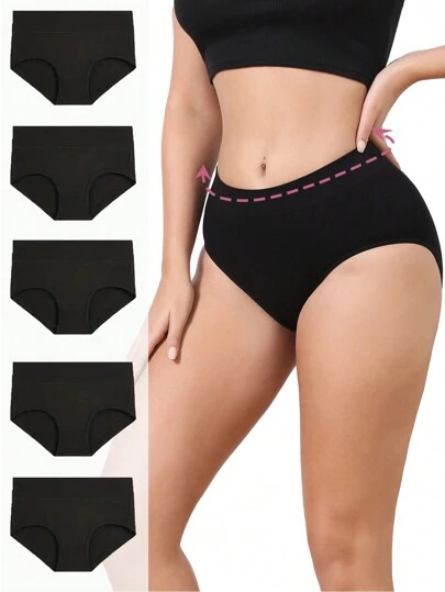 5pcs Letter Graphic Tape Waist Panty - Black - View 1