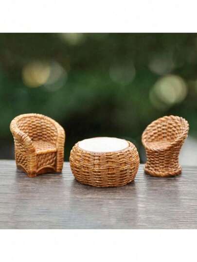 5pcs Mini Bamboo Chair & Table Decoration Set: Adorable Resin Ornaments, Perfect For Micro Landscape Home Decor And Gift Gifts Birthday Graduation - Multicolor - View 1