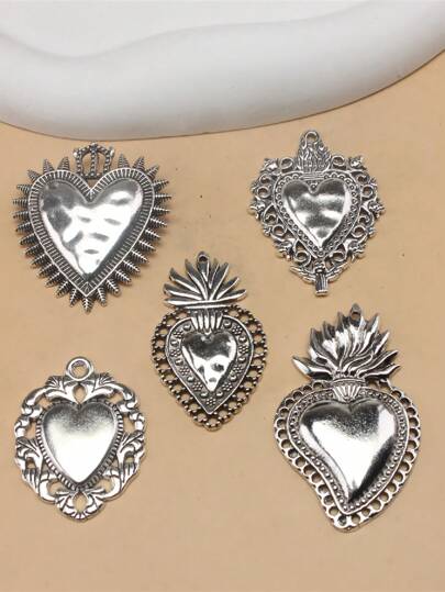 5pcs Mixed Metal Heart Shaped Pendant For DIY Charm Necklaces, Bracelets, Jewelry Crafts - Silver - View 1