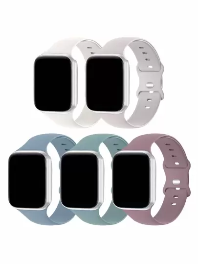 5pcs/Set Sport Bands Compatible With Apple Watch Band 38mm 40mm 41mm 42mm 44mm 45mm 49mm,Colorful And Versatile Soft Silicone Waterproof Strap Compatible With Apple Watch Apple Watch Series 9 Ultra 8 7 6 5 4 3 2 1 SE Women Men - Baby Blue - View 1