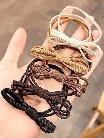 5pcs Simple & Fashionable Basic Bowknot Hair Ties With High Elasticity & Durability, Suitable For Daily Wear, Casual & Outdoor Outfits For Women & Women, Cute & Sweet Style, Perfect Gift For New Year Valentine's Day Valentines - Multicolor - View 4