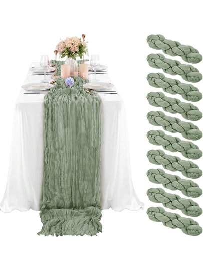 6/10pcs 35"X118" Lavender Green Balinese Gauze Table Runner, Soft Chiffon Bohemian Table Decor For Wedding, Birthday Party, Dining Room - Solid Color - View 17