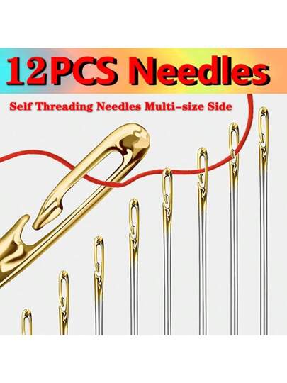 6/12/18pcs Side Hole Self-Threading Hand Sewing Needles, Multi Size For Elderly, Handmade Sewing Needles - Gold tail side piercing hand sewing needle - View 1