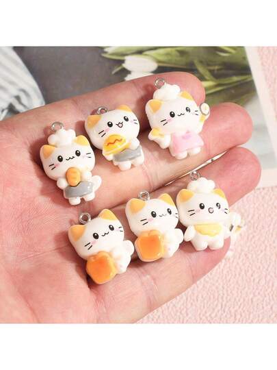 6/12pcs Cute Cartoon Chef Cat Charms - Soft Color Kitchen Decor With Chef Hat, Resin Pendant Suitable For DIY Jewelry Making, Keychain, Birthday & Housewarming Gifts - Compatible With Earrings, Necklaces, Bags - Perfect For Cat Lovers & Baking Enthusiasts, Handmade Ornaments, Charming Accessories, Glossy Design, Decorative Pendant, Great Gift - Multicolor - View 7