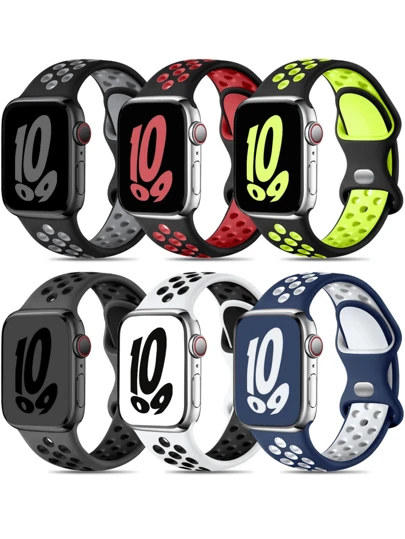 6 Different Colored Sport Bands Compatible With Apple Watch 49mm 45mm 44mm 42mm 41mm 40mm 38mm, 6 Packs Sport Breathable Soft Silicone Strap Compatible With Apple Watch Ultra SE Series 8 7 6 5 4 3 2 1 Men Women - Multicolor - View 1