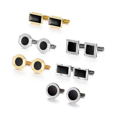 6 Pairs Assorted Gold & Silver Color Metal Cufflinks, High-End Business Gift Box Set For Men, All Season Halloween Accessories Teachers Day - Multicolor - View 1