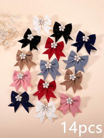 6/14pcs Children Simple Pearl Bow Alligator Hair Clip, Small Girl Princess Hair Accessories, Back/Side Hair Clips, Pigtail Barrettes, Versatile For Party - Bowknot + Pearl Flower 14PCS - View 14