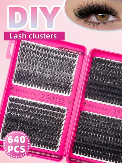 640pcs D-Curl 50D+60D+80D+100D Lash Clusters, 8-16mm, Natural Look & Super Dense, Smart, Super Soft & Lightweight, Reusable Individual Lashes, Suitable For Beginners, Daily Use, Wedding, Date, Party, Music Festival, Halloween Lash Clusters, Lash Clusters, Individual Lashes, False Lashes - Black - View 1