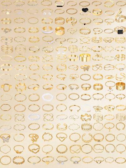 68/66/27/24/21pcs Fashionable, Minimalist, Elegant, Exquisite, Retro Design Geometric Buckle, Flower, Heart, Rhinestone, Bling Bling, Faux Pearl, Drip Oil, Infinity Symbol, Star, Butterfly, Wave, Polygon, Multi-Layer, Spring, Tassel, Round Disc, Round Bead, Square Hollow Design, Snake Shape, Smooth, Minimalist Metal Ring Set, Suitable For Holiday, Party, Date, Gift, Daily Wear - Yellow Gold - View 1
