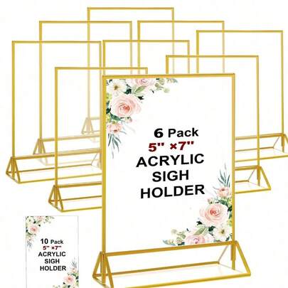 6PCS Clear Acrylic Gold Frame Table Sign Holder Double Sided T Shape Display Stand Vertical Horizontal Menu Card Photo Frame For Restaurant Office Shop Event Wedding Table Sign Easter Holiday Supplies New Year Festival Decor - Multicolor - View 6