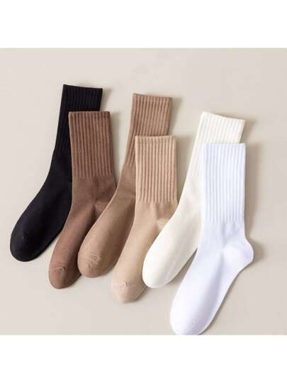 6pairs Women's Solid Color Knee-high Socks - Multicolor - View 1