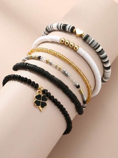 Bộ 6 hạt cườm chữ thời trang, vòng tay hình trái tim bằng đất sét mềm, mặt dây chuyền cỏ ba lá, màu ngẫu nhiên, dành cho bé gái