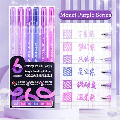 6pcs Ballpoint Pens! Quick-Drying Smooth Ink, Full Coverage Of Basic Colors, Essential For Beginners' Diaries And Notes, Non-Fading Colors - A Great Choice For Professional Art Use - Monet Purple - View 1