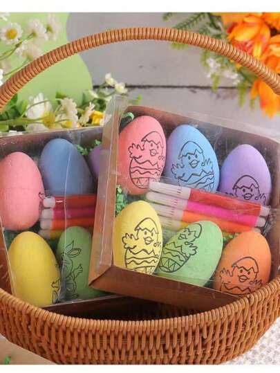6pcs Easter DIY Hand Drawn Easter Egg 2025 Handmade Color Cartoon Rabbit Egg Children's Handmade Gift (Style Random) - Multicolor - View 6