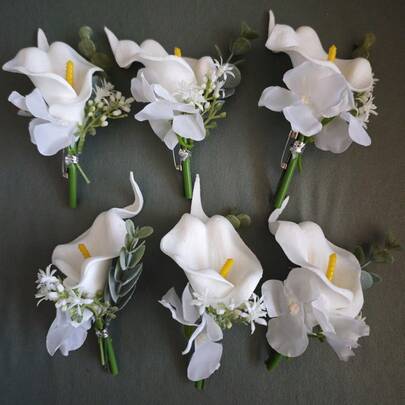 6pcs Elegant Calla Lily Flower With Faux Green Leaves Corsage Set, Suitable For Groom, Bride, Wedding Decoration, Banquet, Anniversary Valentine's Day Accessories - A - View 8