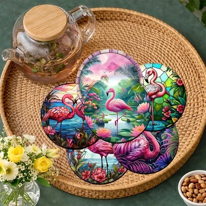 6pcs Flamingo Pattern Coaster Set, Home Decor Absorbent Silica Gel Coasters For Tea Cup, Water Glass, Wine Glass, Coffee Cup, Placemats, Suitable For Home, Party, Kitchen Accessories, All Season Decoration - Multicolor - View 1