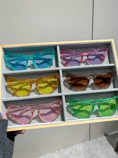 6pcs Ladies' Heart Shaped Vintage & High-End Feeling & Fashion Glasses - Multicolor - View 1